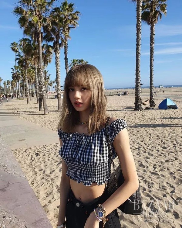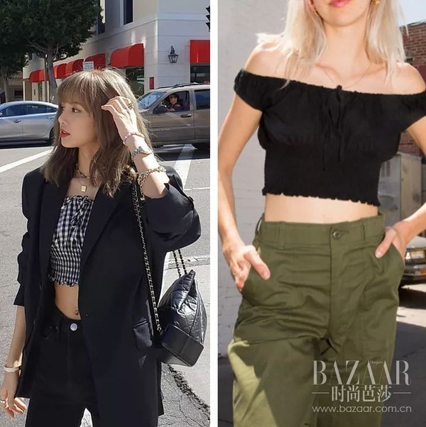 Lisa的小上衣更加俏皮活泼,使用皮筋完成上松下紧的设计,既完美勾勒出腰身,又让胸部起到膨胀的视觉效果。不过Get Lisa同款配色官网已经卖断货,想要的可以选择黑色款,显身材的能力更佳哦。