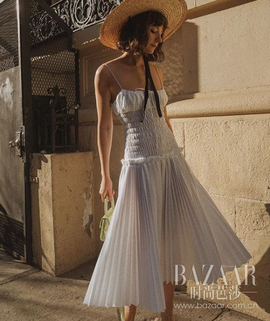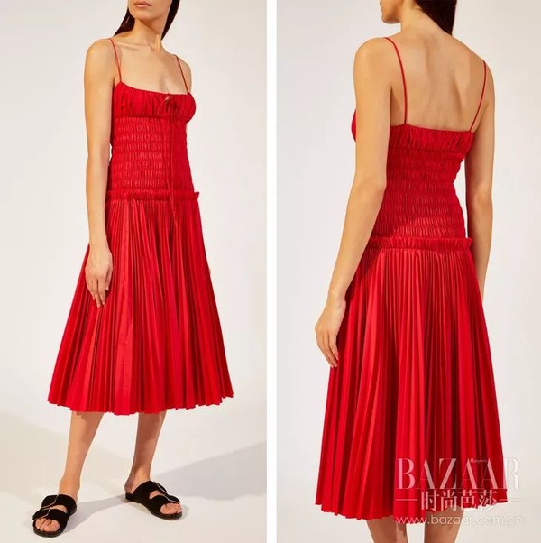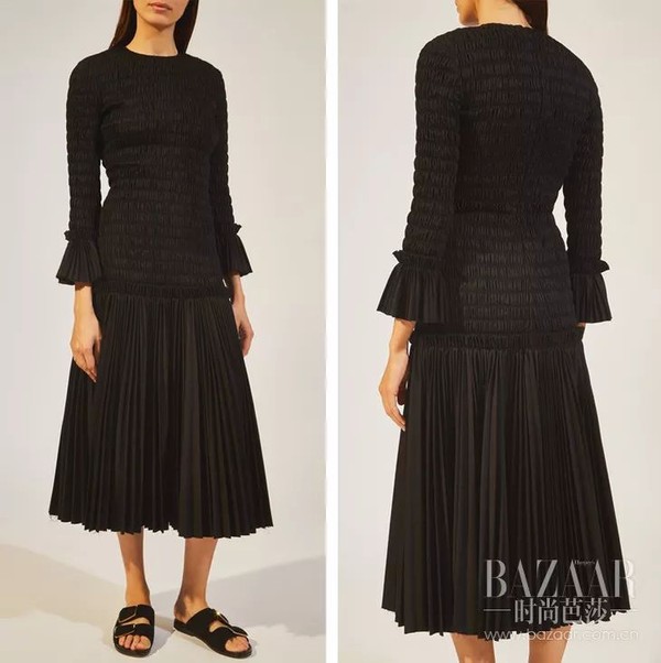 不同于前面皮筋元素带来的度假感,它家的皮筋元素设计连衣裙优雅唯美,而皮筋褶裥细节带来的是另一种时髦的摩登,充满现代感。