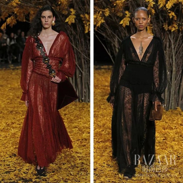 KHAITE还将这股夏日感的设计直接延续到了秋冬系列中,利用薄纱的细腻朦胧和皮筋褶裥给人们带来了一场浪漫温柔的视觉盛宴。