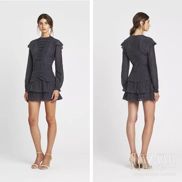 想要挑战又酷又美的造型,SIR the label也能帮你实现。深色荷叶边连衣裙通过皮筋带来的层层点缀,变得华丽起来,细节中带有一丝酷感,时髦到不行~
