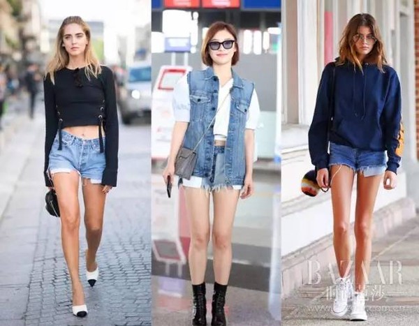 还想显腿更长?可以拿牛仔短裤搭配crop top,提高腰线分分钟搞定!在炎热的夏日里,就是要这样露出小心机~
