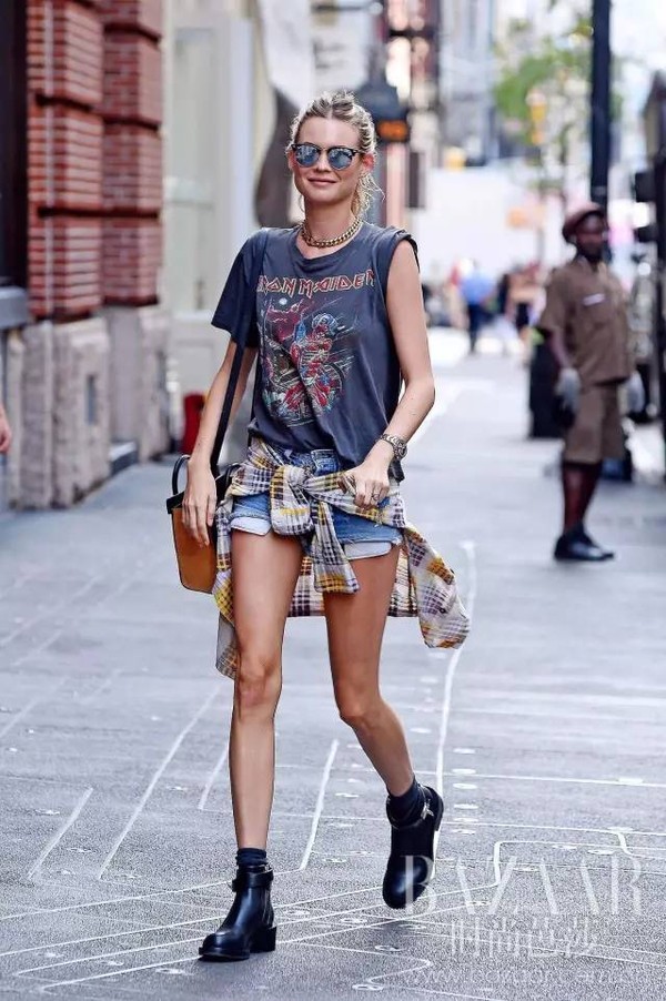 还记得美国街头最in的穿搭方式吗?复古T+短裤+扎腰格纹衬衣!今年搭配的短裤也得选露兜儿款,这样才能打造出够劲儿的美国嘻哈Look~