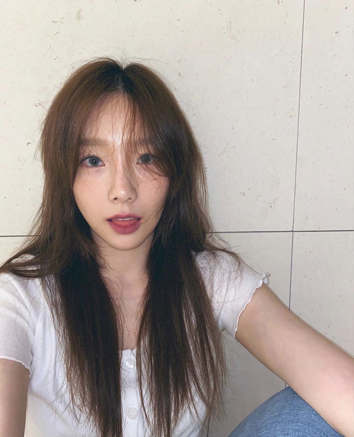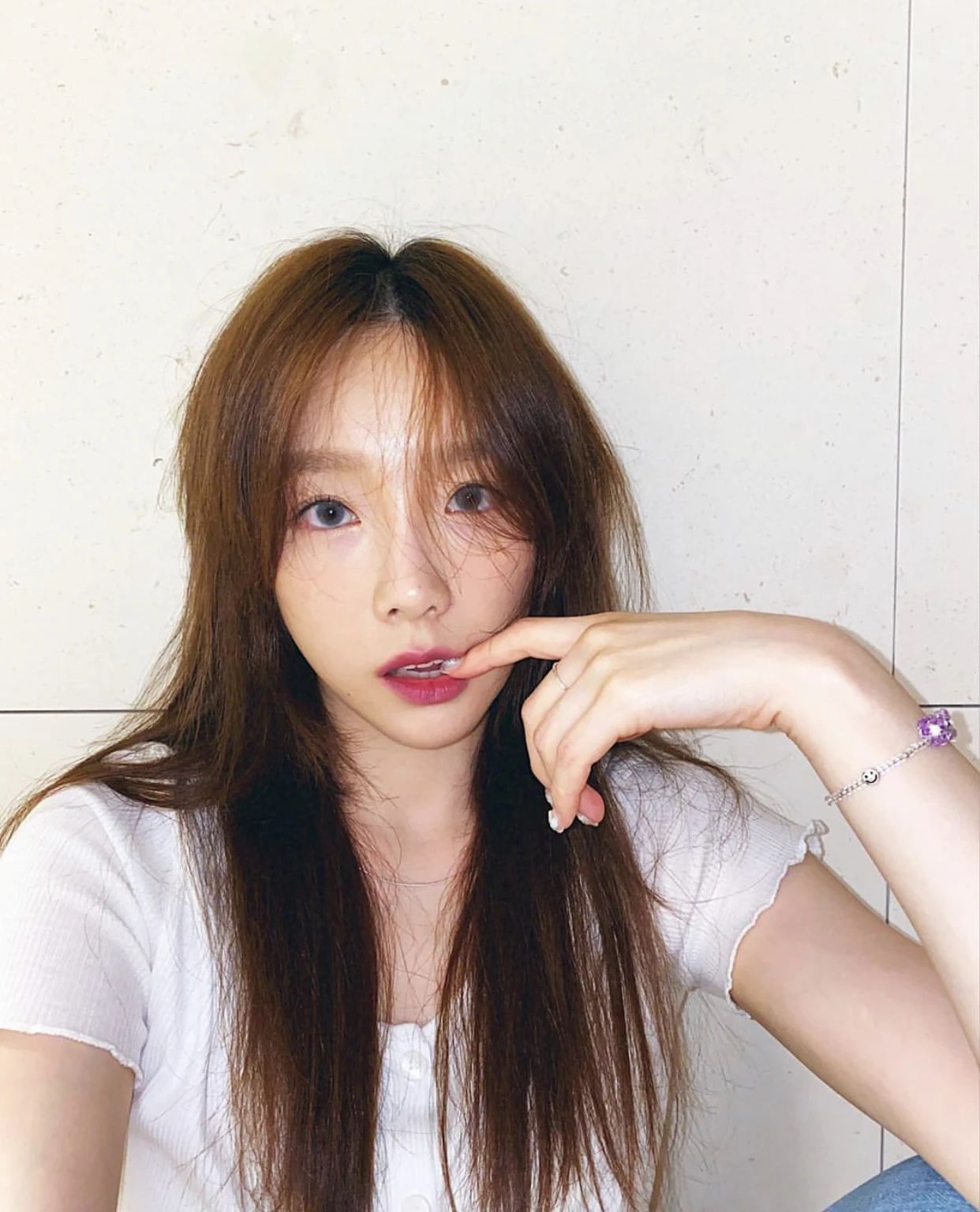 比如泰妍这件T恤,袖部的卷边小细节真的让人傻傻分不清楚正反面,简单的白Tee却又因此多了一点甜。