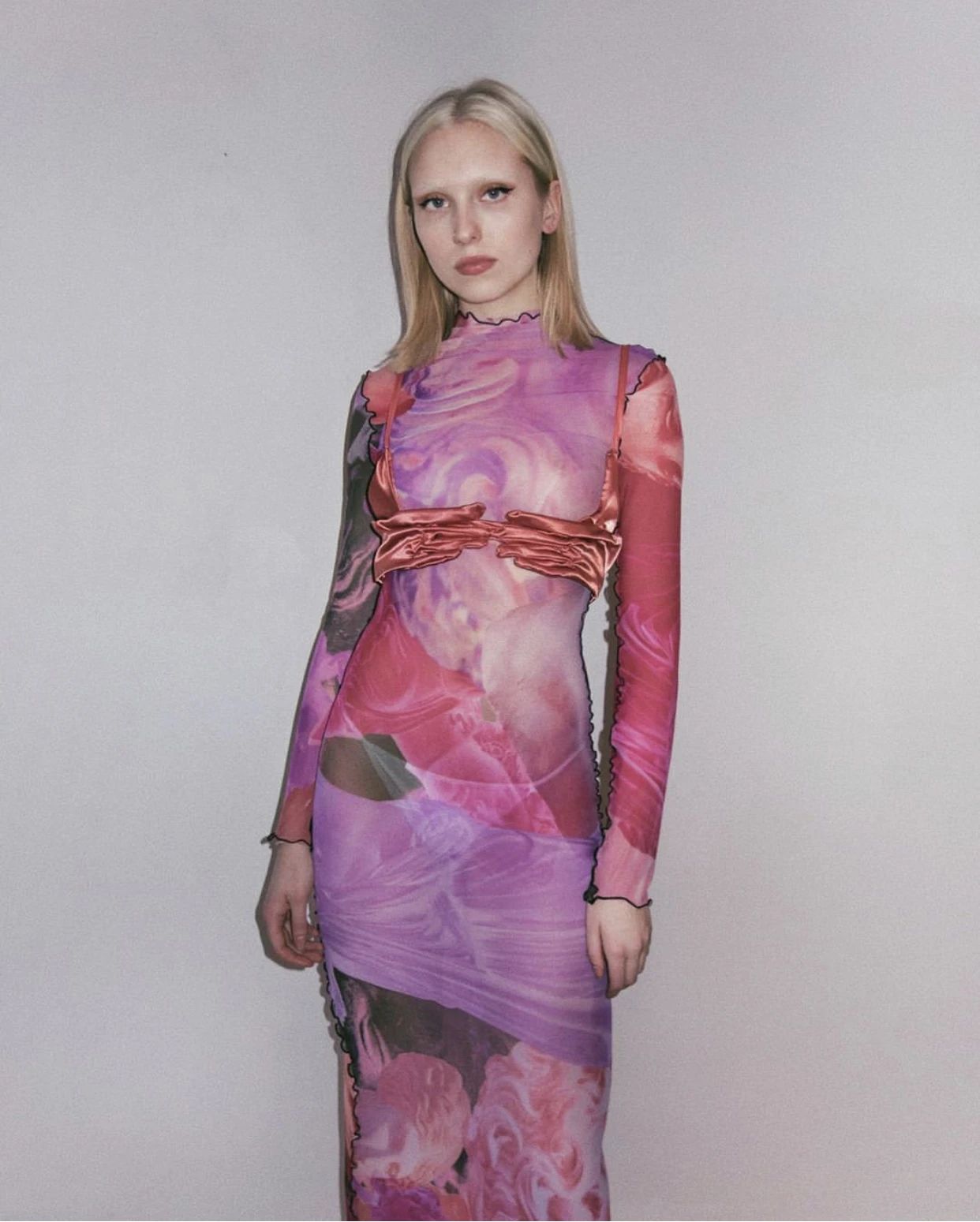 Helena Manzano也是针脚外露设计里较早出圈的,设计师2014年在伦敦时装学院毕业后,同名品牌便因为独特的“未完成”感与古典元素的结合而闻名。