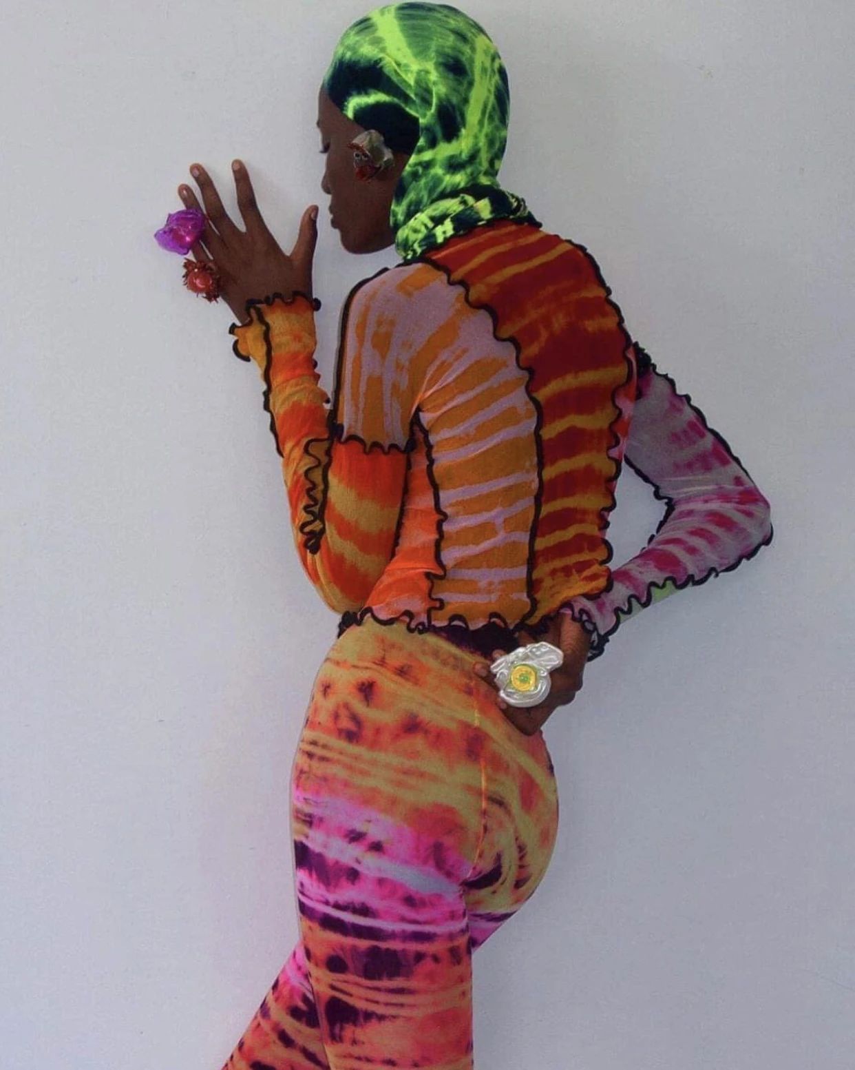 Charlotte采取了一种反潮流的态度,并受到斯蒂芬·伯罗斯(Stephen Burrows)的大力启发,Charlotte把她使用的织物当作了色板,缝线充当了画笔,作品充满了活力。