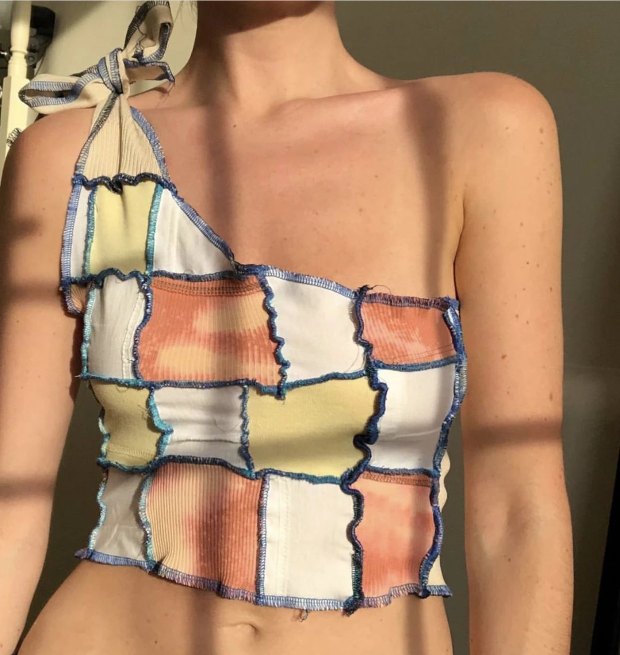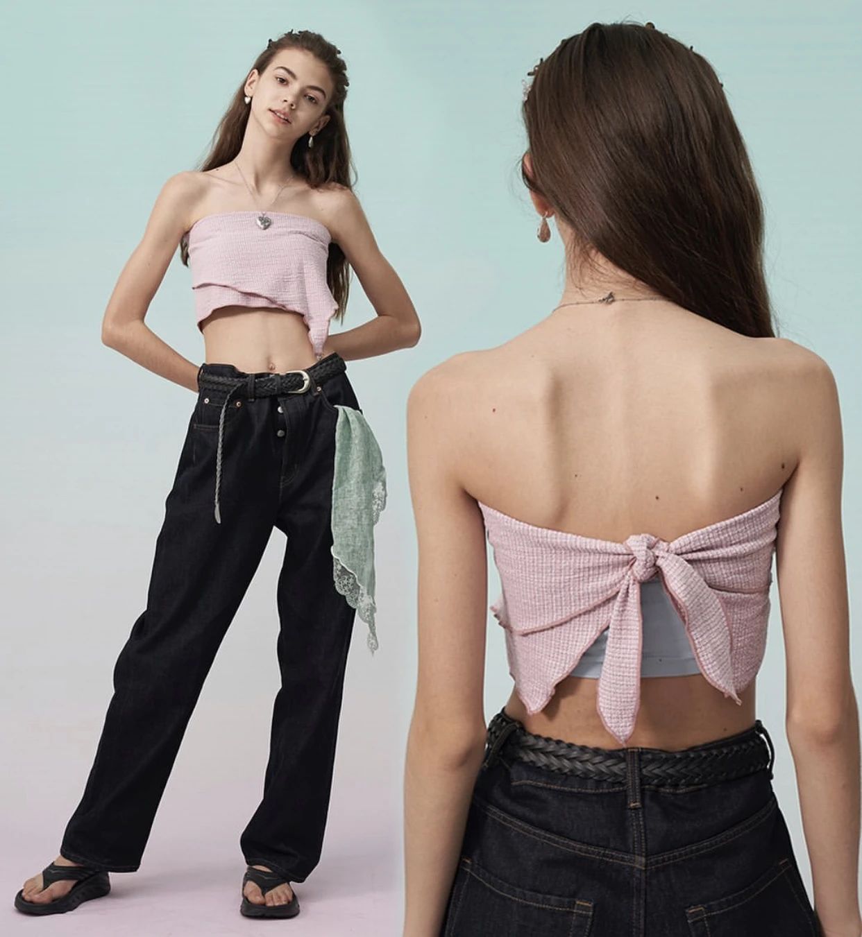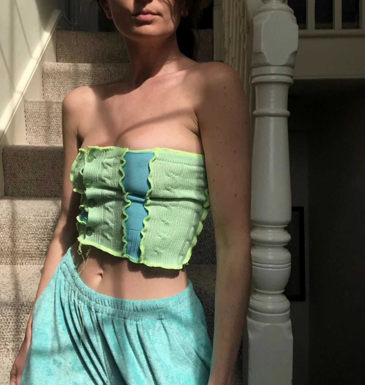 用褶皱拼接起来的抹胸款,使平淡无奇的抹胸瞬间变的不一样了起来。色彩配色方面也非常好看!
