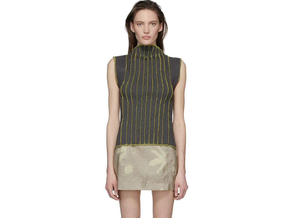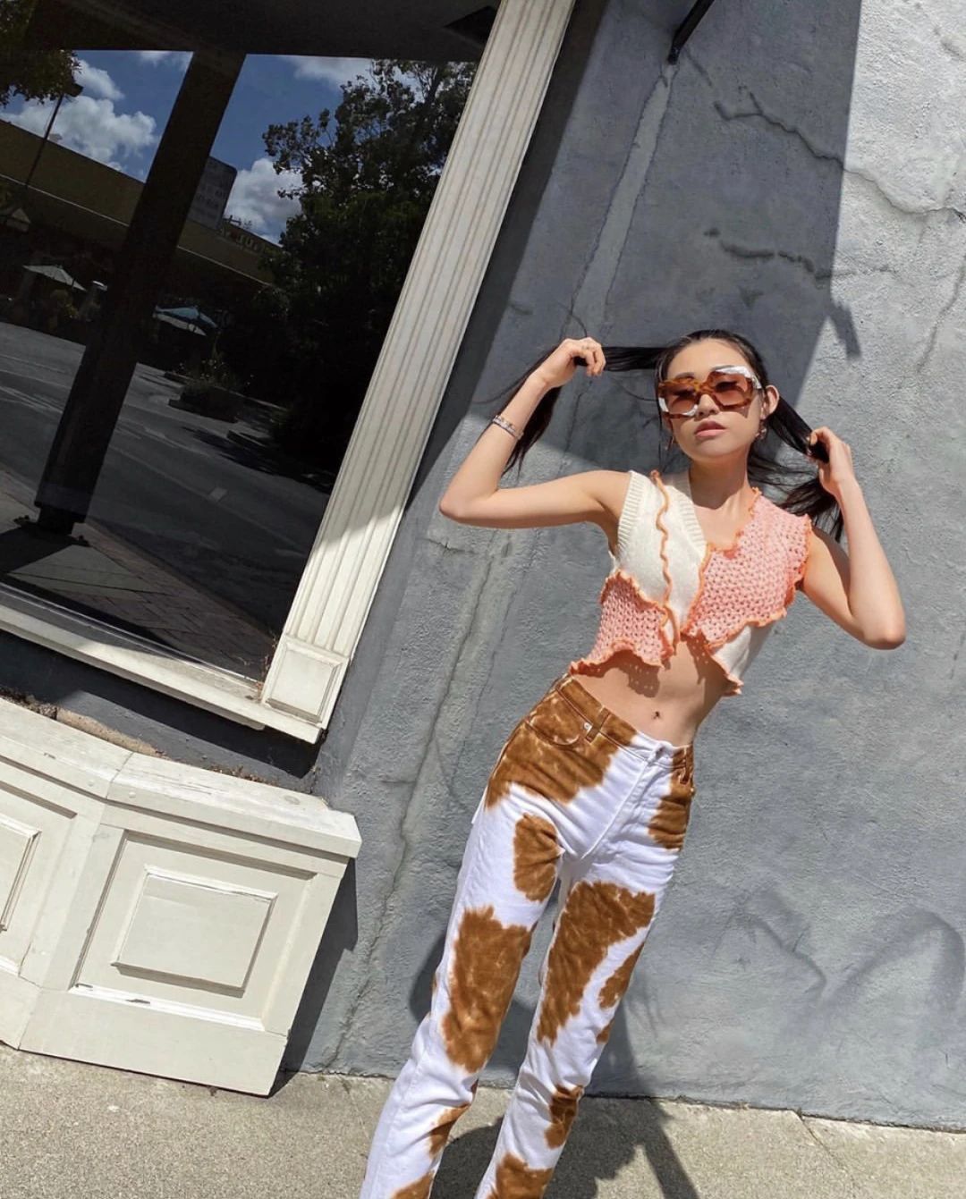时尚博主Jaime Xie上身的这款,毛呢与印花拼凑而成的小背心,不对称的剪裁,各种颜色的碰撞实在是太绝了。