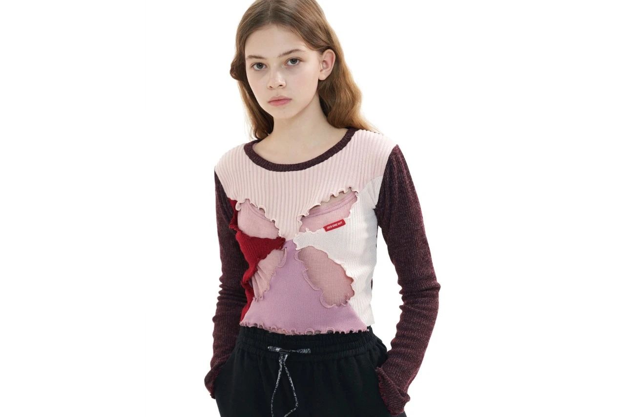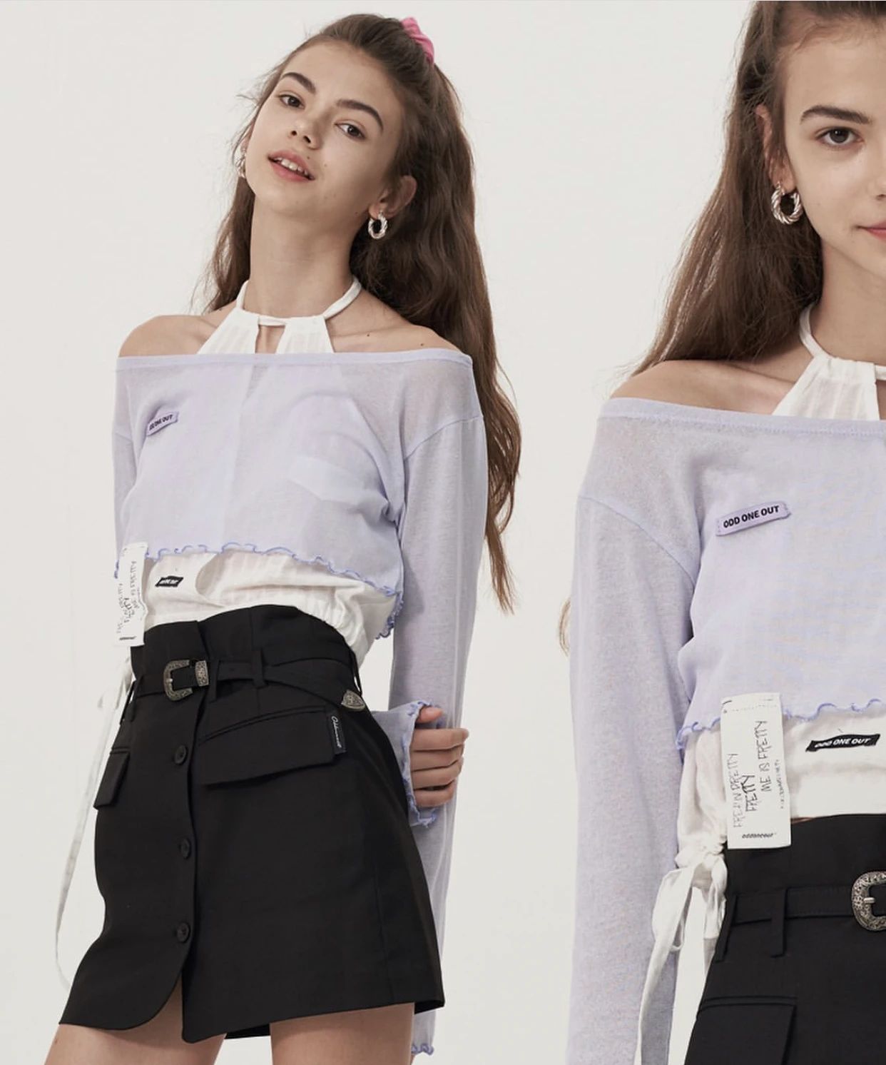 以格格不入和与众不同为品牌真谛,Oddoneout的针脚边和其他品牌的有些不同,主要在于对衣角边和领口袖口做的处理,打造了自带少女感的mini荷叶边。