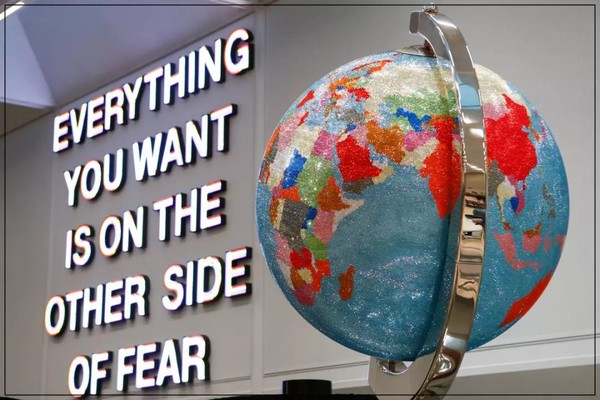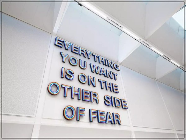 墙上用巨大的五彩立体字写着“EVERYTHING YOU WANT IS ON THE OTHER SIDE OF FEAR”