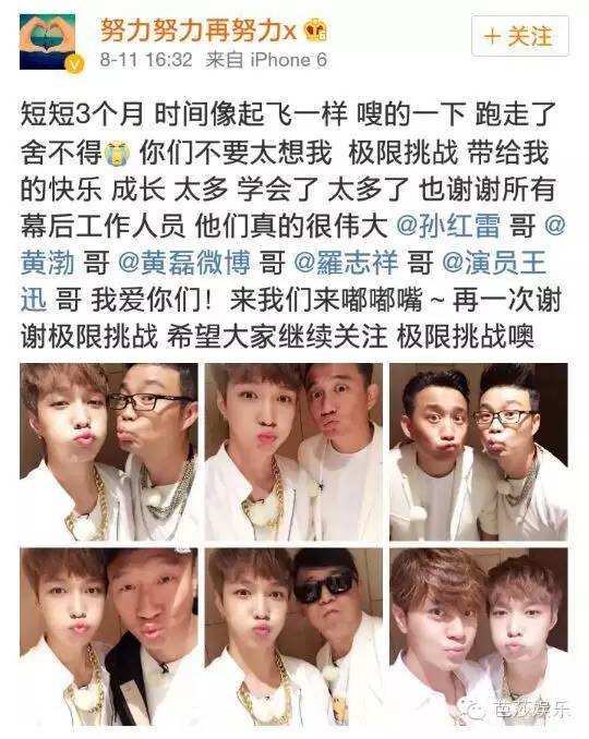 【时尚芭莎网讯】小希 陪伴我们一个夏天的《极限挑战》就要结束啦! 小绵羊张艺兴在微博上晒出了和哥哥们的合影! 芭姐看看这帮逗乐的极限男人帮们,还真有点舍不得呢! 男人帮成对组CP,“红兴&rdquo...