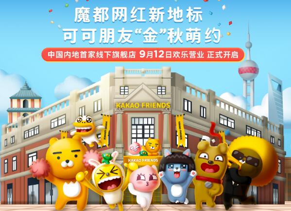 超人气卖萌组合KAKAO FRIENDS 可可朋友的中国内地首家线下旗舰店终于千里迢迢从韩国来到魔都“定居”啦,此次落“沪”位于上海南京东路172号,毗邻城市中心——人民广场,及著名地标——外滩,将于9月12日正式营业。欢迎各位萌友前来玩耍,与KAKAO FRIENDS可可朋友一起探索魔都网红新地标,发掘萌趣新玩法!