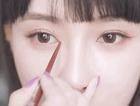 一般来说,内眼角眼线和上扬式眼线是比较常见的调节眼形的画法。内眼角眼线=拉近眼距、调节眼头幅度,具体的例子可以参考前面提到过的宋祖儿。只要你的两眼间距比例适中或较宽都可以尝试内眼角眼线。
