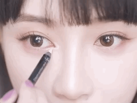 STEP4:用白色眼线笔,提亮刚刚画出的内眼角外缘,接着拿出棉签把白色眼线晕染开就可以了。