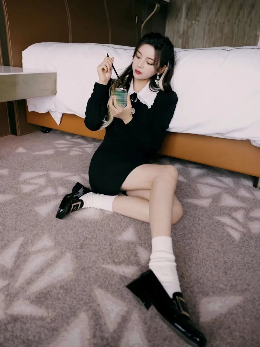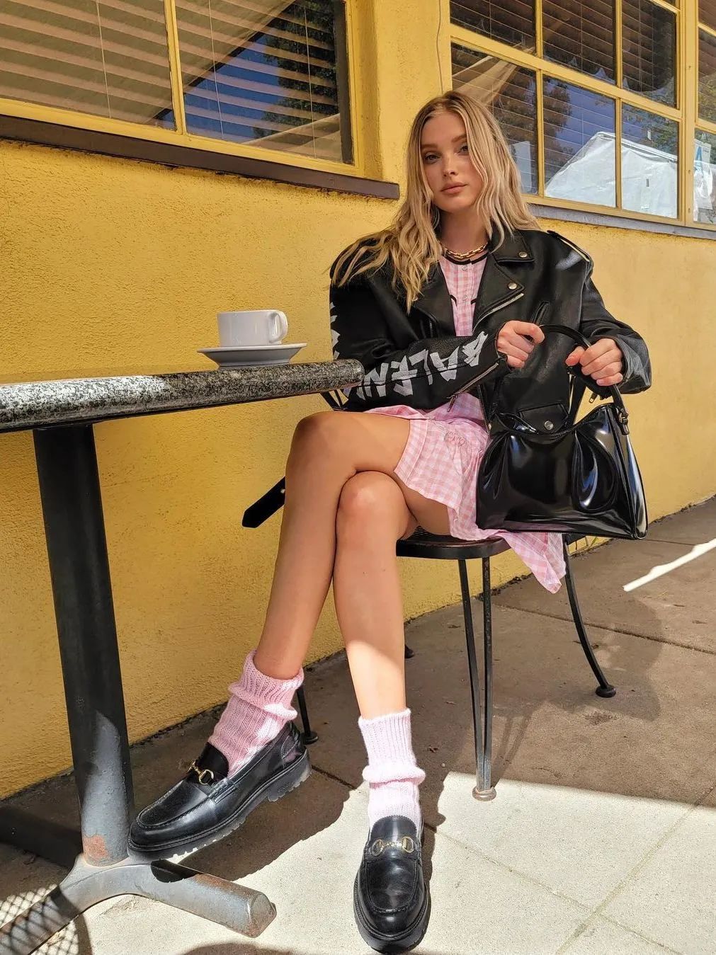 想更有少女感的,还可以挑战一下中筒袜或及膝袜。用它搭配乐福鞋,少女气息和中性气质相碰撞,甜酷女孩就是你!
