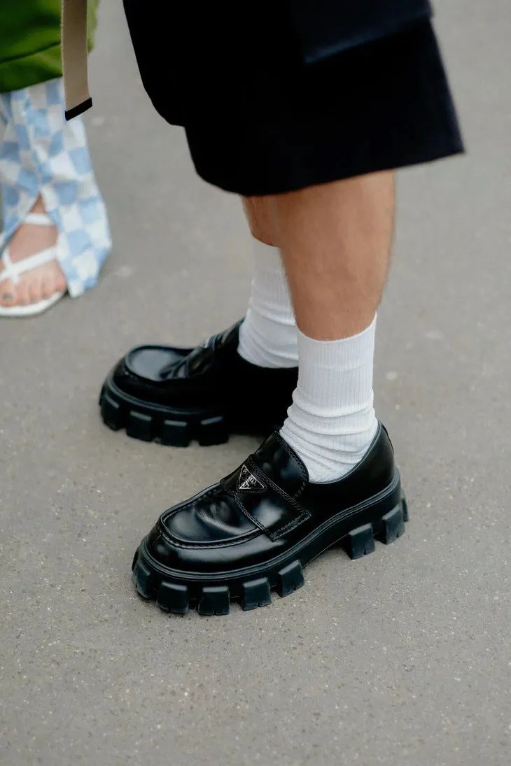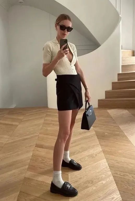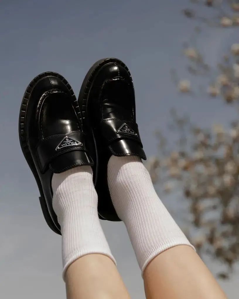 什 么 样 的 袜 子 才 百 搭最后,在穿搭时还要注意袜子的选择。乐福鞋和短袜的搭配最经典。袜筒长度选在脚踝附近就好,能打造出层次感同时,也为穿搭加入几分正式感。颜色上,如果是白色短袜,在今年尤其加分。亮眼的色彩碰撞能完美诠释乐福鞋的帅气随性,总之是谁穿谁时髦~黑色短袜也是百搭之选,比白袜子更酷,在任何场合都不会出错。如果搭配黑色的乐福鞋和长裤,三者顺色,整体视觉也非常和谐。