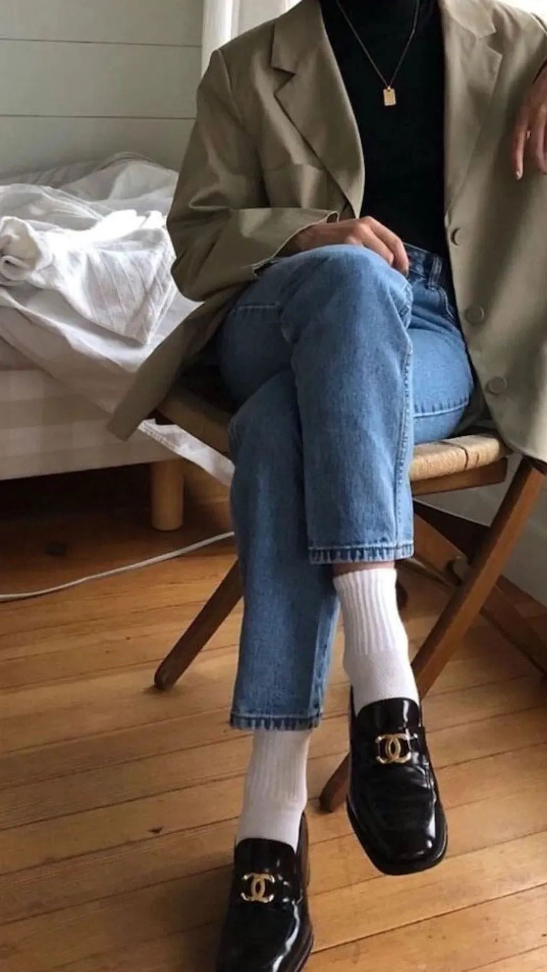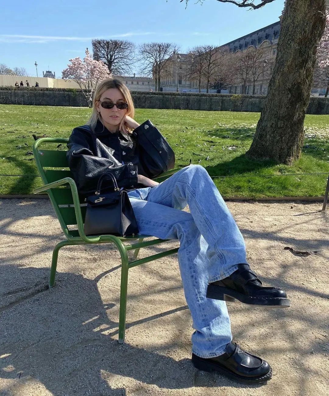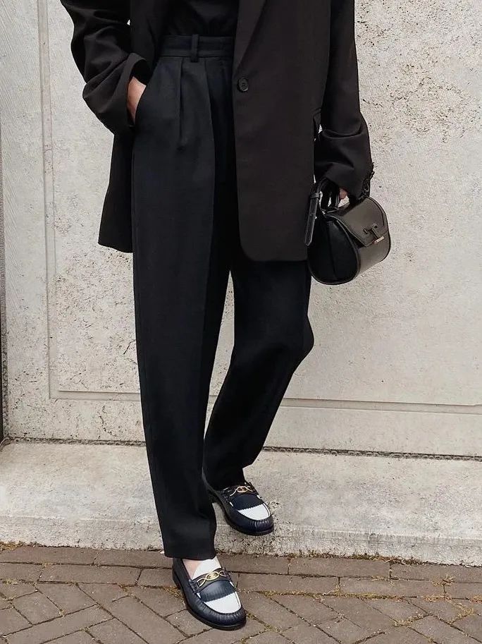 乐福鞋与直筒牛仔裤、西装长裤的搭配,也是极为常见的组合。只要套上西装外套或者板型挺括的风衣,轻松搞定秋季休闲时髦的通勤Look,不仅穿着舒服,还很有造型感。