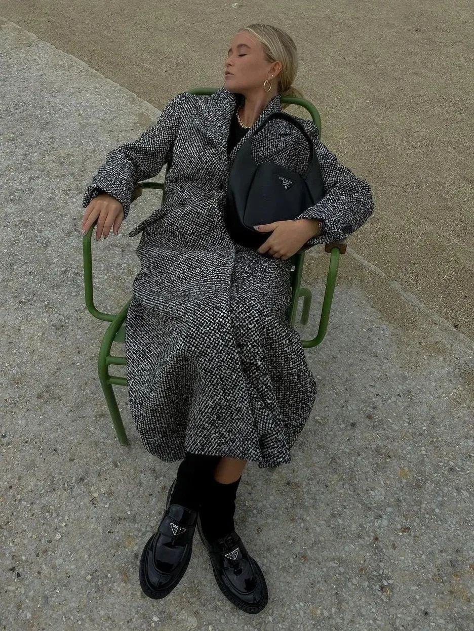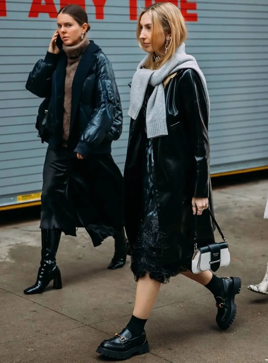 北方的同学也可以参考CELINE秋冬秀场上的造型,换成更能御寒的长裙款式,用中性的乐福鞋来搭配,介于硬朗与温柔之间的气质,显得特别有魅力。当然了,更可爱的娃娃裙也可以搭配乐福鞋。两者都带有减龄属性,用乐福鞋的帅气来平衡甜腻感,俏皮中还带着酷感。