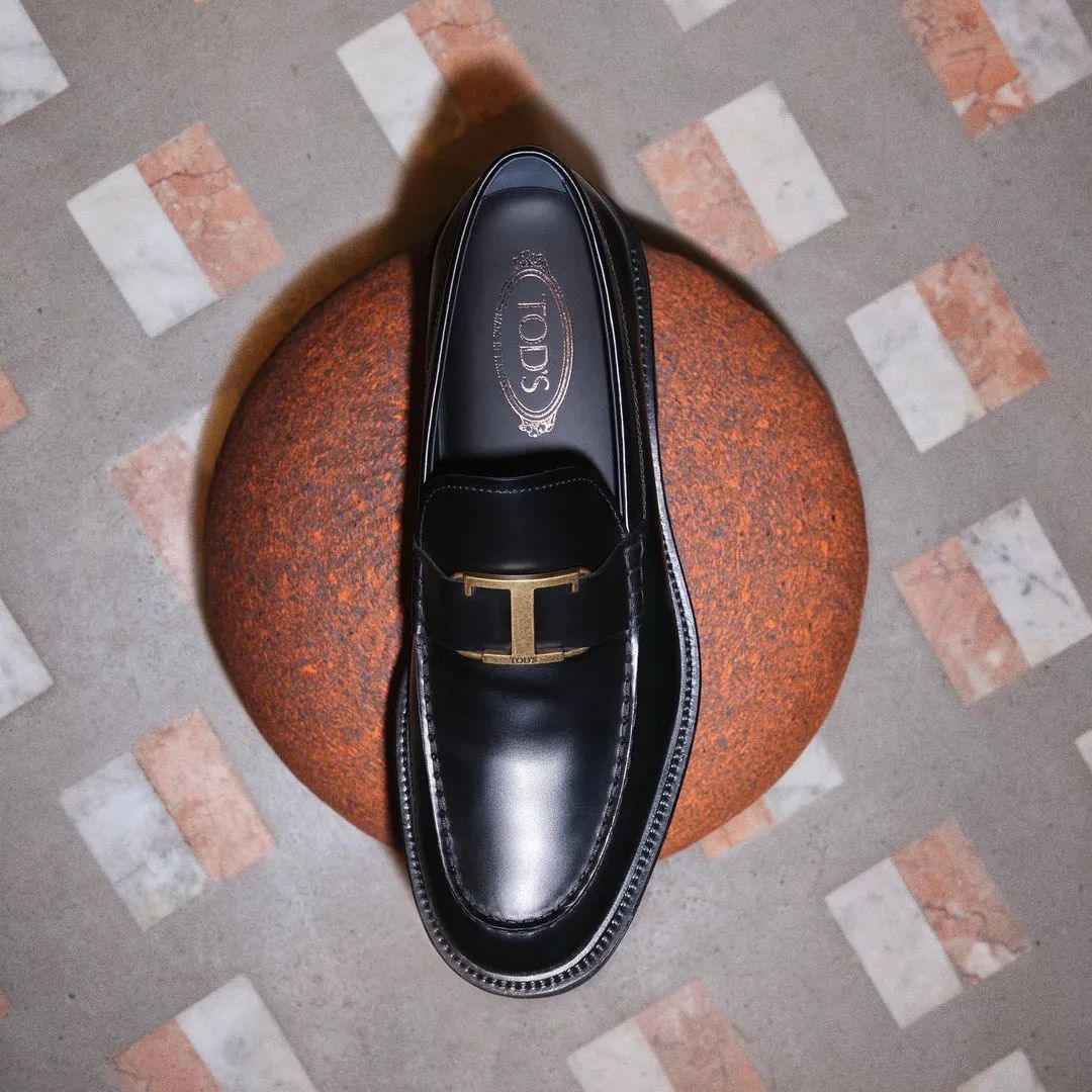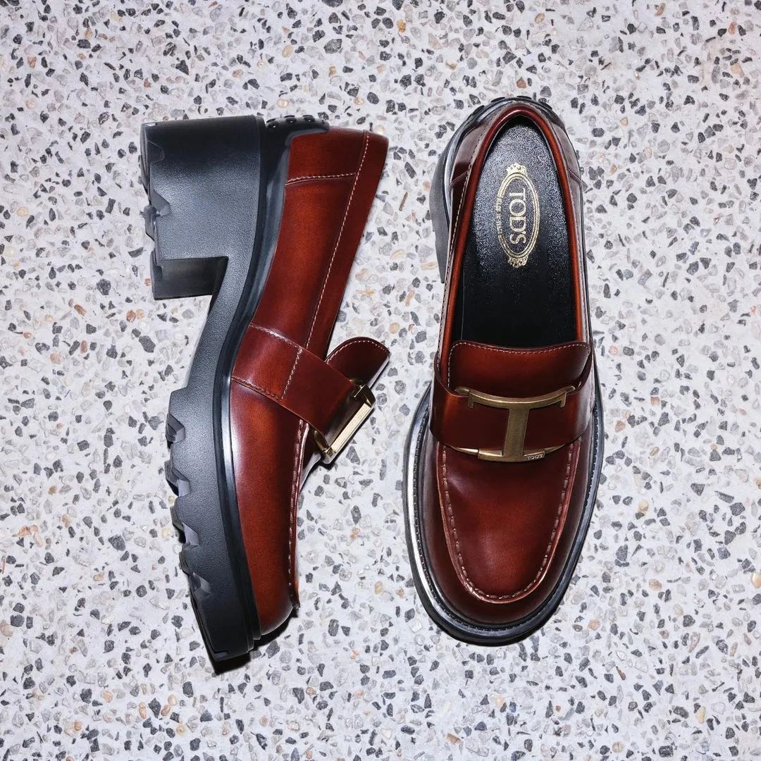 如果追求经典不易过时的设计,那么今年还有金属元素加持的乐福鞋也很适合。虽然以往也有不少金属扣设计的乐福鞋,但今年还是有点不一样。Roger Vivier把经典的金属方扣变得更大、更瞩目,放在乐福鞋面上,金属扣的光泽感十足让单品更加耐看,在经典的基础上增添了一丝独特的趣味。TOD'S也选择在鞋面上增加大面积的金属细节。Kate系列乐福鞋上是经典的金属环扣,T Timeless系列则是大大的金属T形扣,都很适合日常通勤,入手一双就是行走在时髦前沿的人儿了~