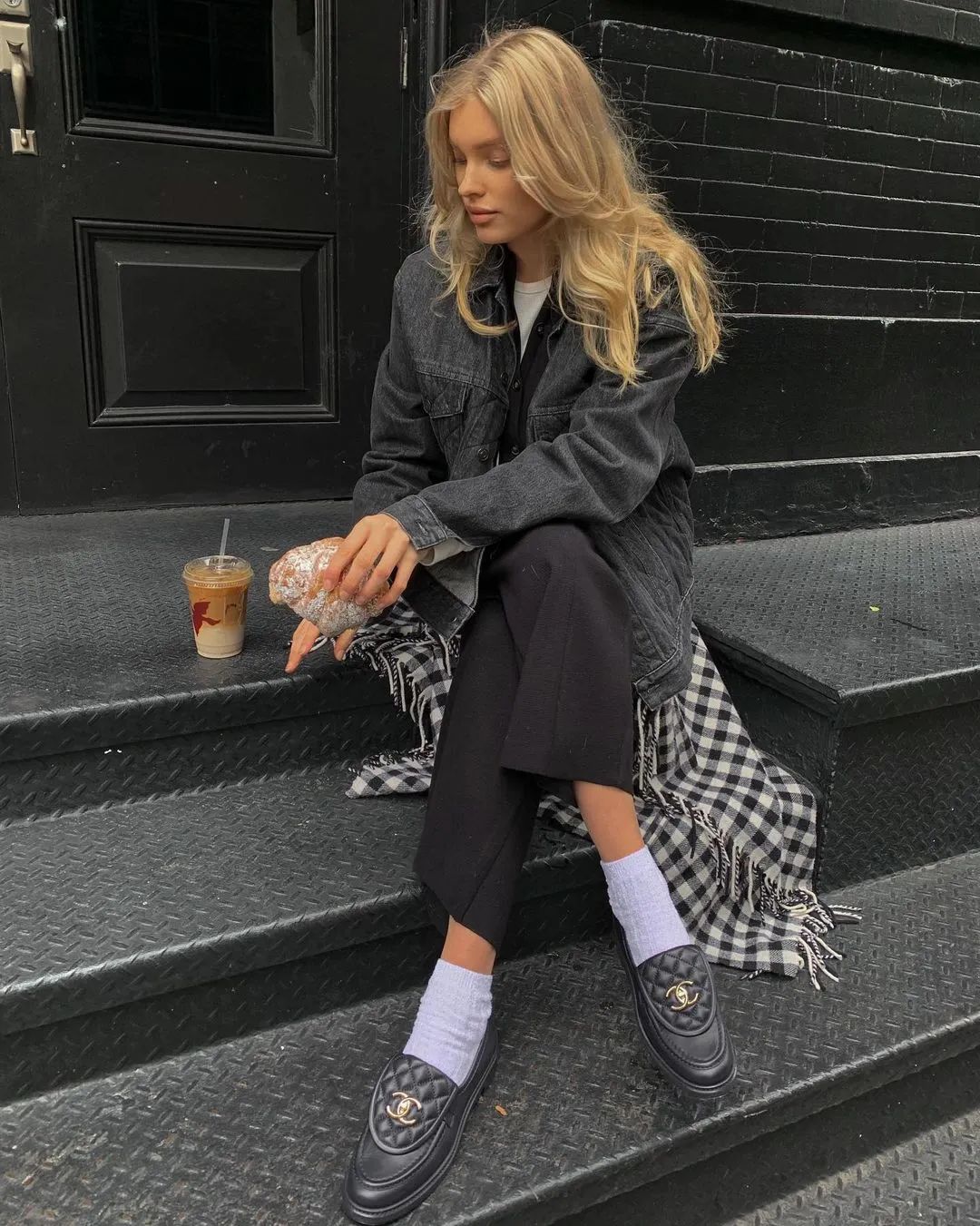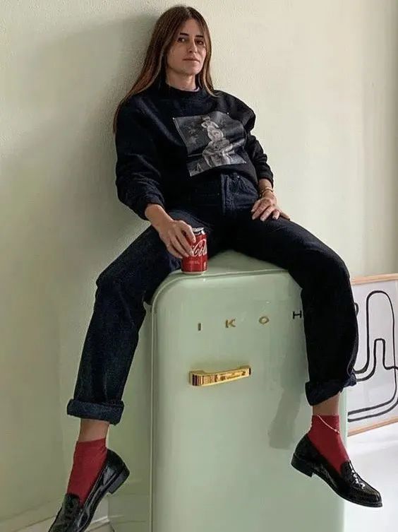 选好了乐福鞋,就该来研究怎样才能把它穿得时髦好看。当下最火的穿法,乐福鞋+袜子的组合必须拥有姓名。