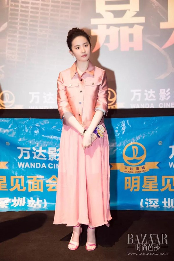 刘亦菲选择了用皮质与纱来碰撞,带来春日甜美气息的同时,还有皮感的摩登气息,刚柔并济的搭配法则被刘亦菲玩得透透的~