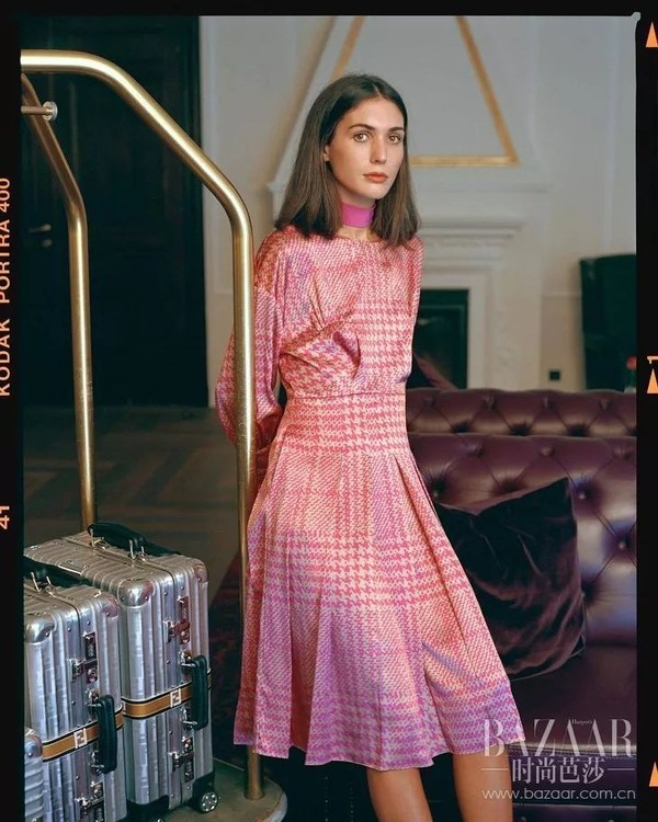 在腰间优先选择对比度高的颜色,但其它的配饰选择与衣服有些色差的粉色更有趣!Diletta颈脖间的Choker自带叛逆,与她乖巧的粉色格纹裙巧妙碰撞,看上去时髦极了!
