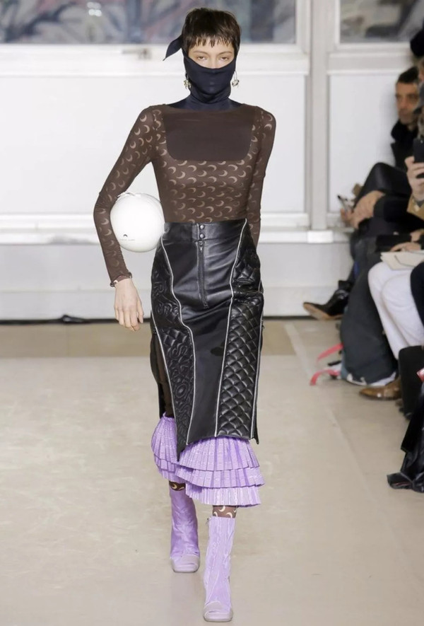 借由具备争议性的时装形象来探讨,这或许就是Marine Serre赋予其品牌标志性的图案黑色这一既传统又醒目的标识更大的期望。