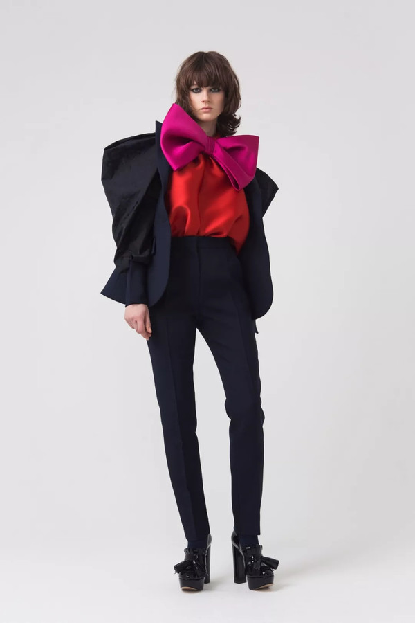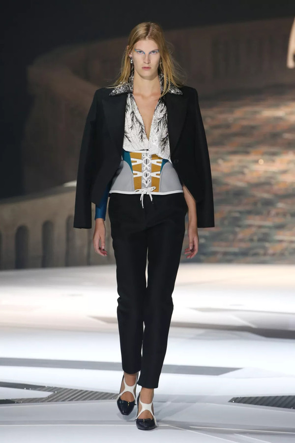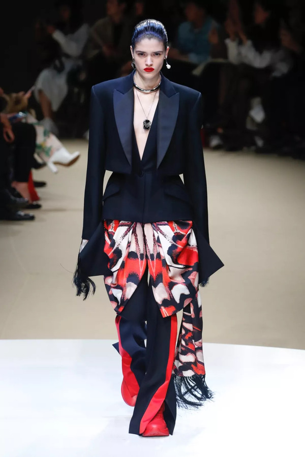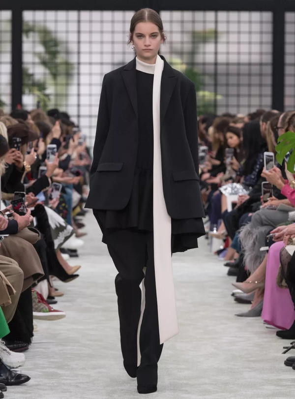 但在本季,Louis Vuitton收紧了腰部曲线、Valentino勾勒出修长优雅的领口、Alexander McQueen增添了柔和妩媚的真丝下摆,用以凸显女性的柔和魅力。强调身体曲线的黑色西装成为了女性的铠甲,而“女性权利的外衣”成为今年秋冬秀台上不可忽视的现实话题。