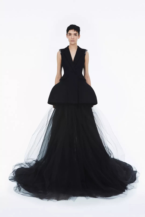 不只是Vera Wang,本季众多品牌都欣然加入了这场无声的宣誓,推出了拥有强势廓形的黑色西装。但与往年不同,原本女性西装由男士西装演变而来,以直线廓形勾勒出女性强势的一面。