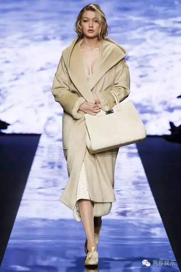 浴袍大衣就是有一种让女人性感加倍的魅力,模特Gigi 用手轻轻的把自己裹住,好像随时都有可能脱掉这件浴袍大衣,一种慵懒的性感