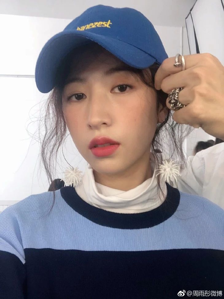 这个腮红的画法旨在从视觉上提高我们的苹果肌,很适合苹果肌向下或者中庭很长的姐妹。看周雨彤的高位腮红淡淡打在脸上,不光提升好气色,还缩短了脸部长度。