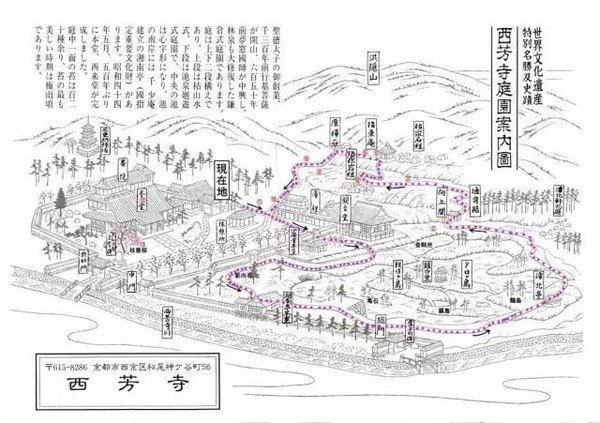 要想参观西芳寺并不容易,因该寺每日限制参拜人数,且参拜金额高达三千日币,堪称京都寺庙中数一数二者。需至少提前一周,以手写往返明信片预约。之所以诸多限制是因为人的体温会影响苔藓的生长,可见日本对于自然的养护十分讲究