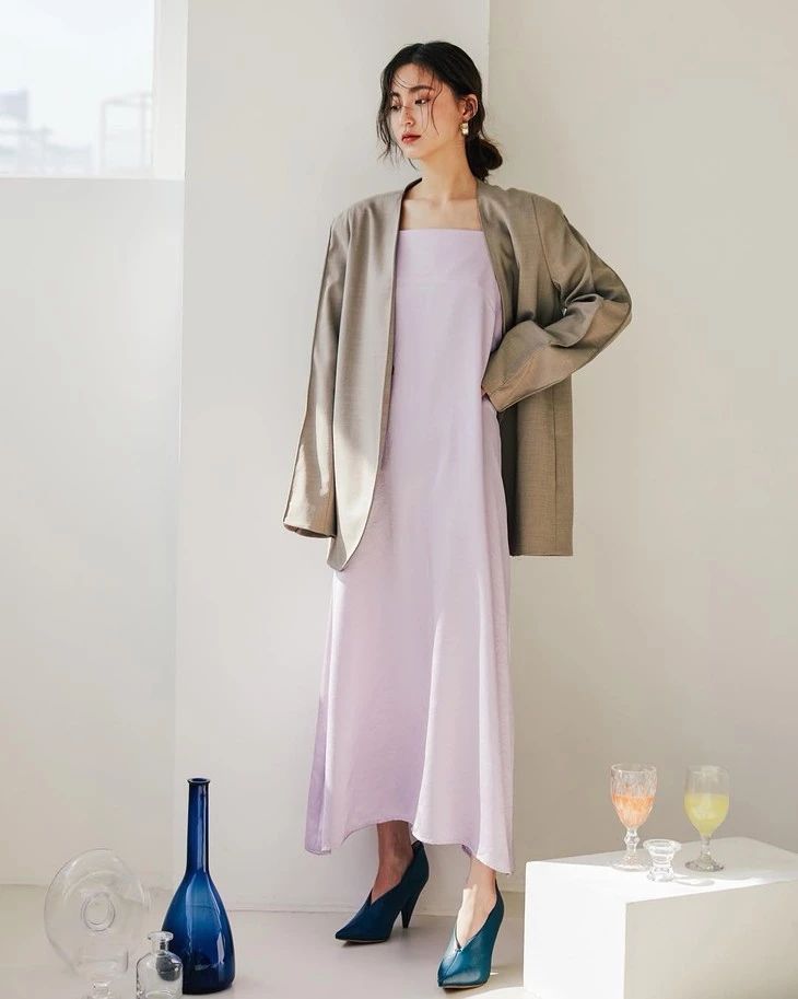 如果在炎热的下午要出门,调淡全身的色调就能变得飘逸灵动,是那种让人想要回头看一样的模样没错了。