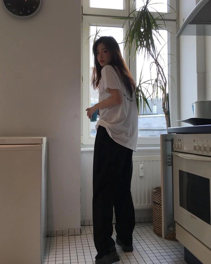 除了法式风格之外,智英最喜欢的就是中性感十足的休闲运动风,这也是最适合她这个年龄段女孩们的风格之一。智英的所有裤子几乎清一色的都是宽松款式,不仅舒适度高,也能更好地用来搭配不同风格的服装。
