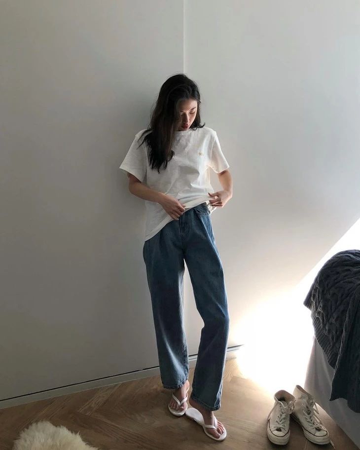 各种基本款的白T恤是她最喜欢的单品之一,好穿又百搭。看起来就像是休闲的居家T恤,但换上帆布鞋出门也是清爽怡人。