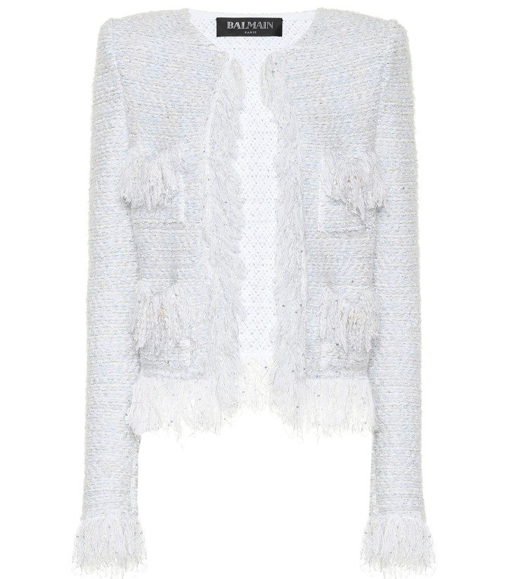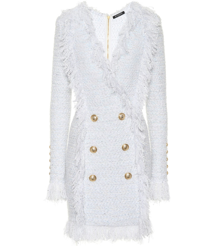 此次合作基于Balmain的标志性元素进行创新,在银白色粗花呢质地上镶嵌金属装饰。 Balmain 创意总监Olivier Rousteing 说道:“这些标志性元素即使在秀场多年后,仍然持续不断地给予我灵感,它们的活力绝不仅仅存在一个季度,在之后的很多个系列中,都有其缩影,我也很难选出最爱的系列,因为每一个系列都是我与我的团队付诸了无数时间与精力的成果。”