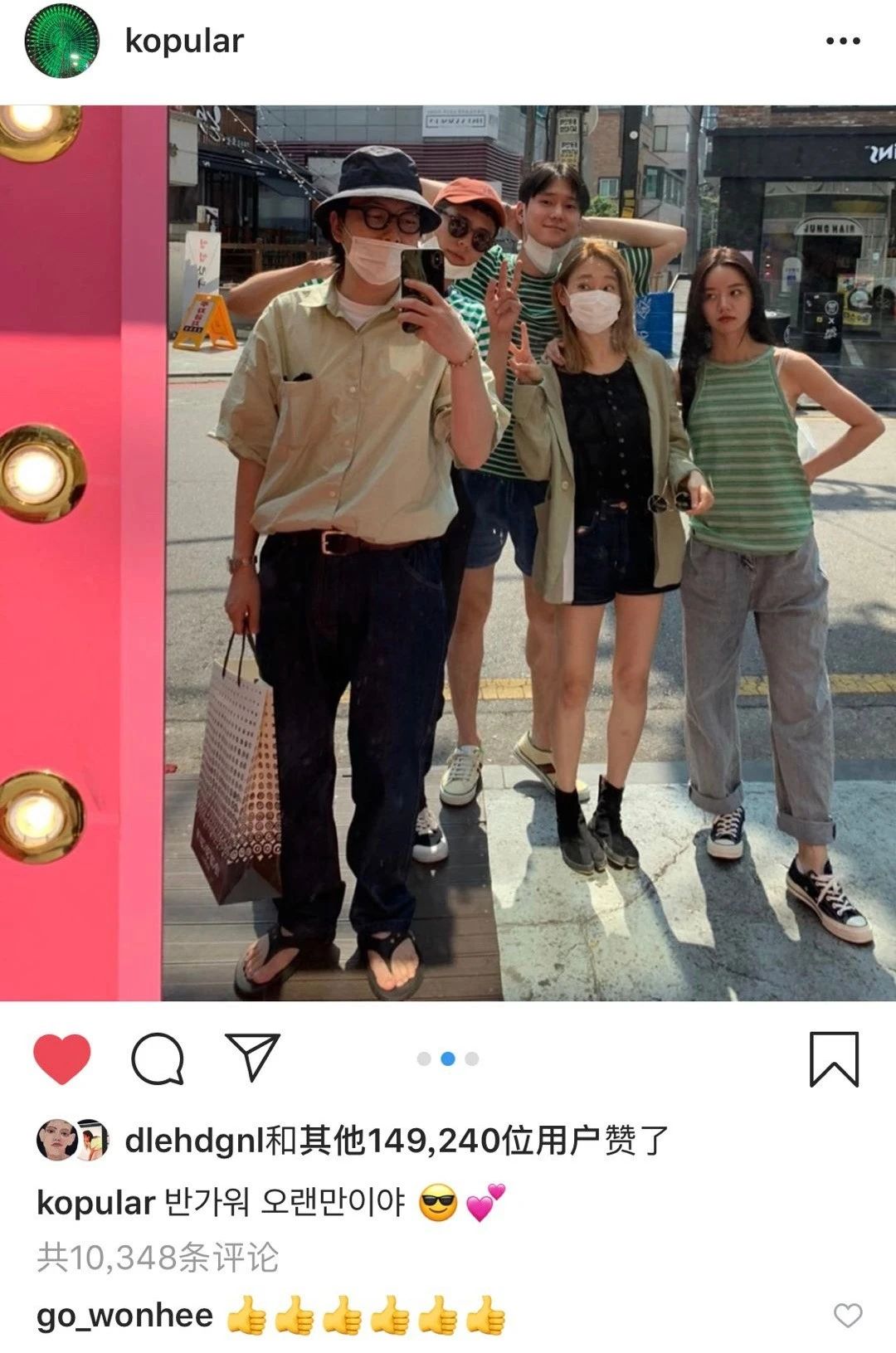 时隔5年,双门洞伙伴line李惠利、柳慧英、朴宝剑、高庚杓与李东辉再次同框出街