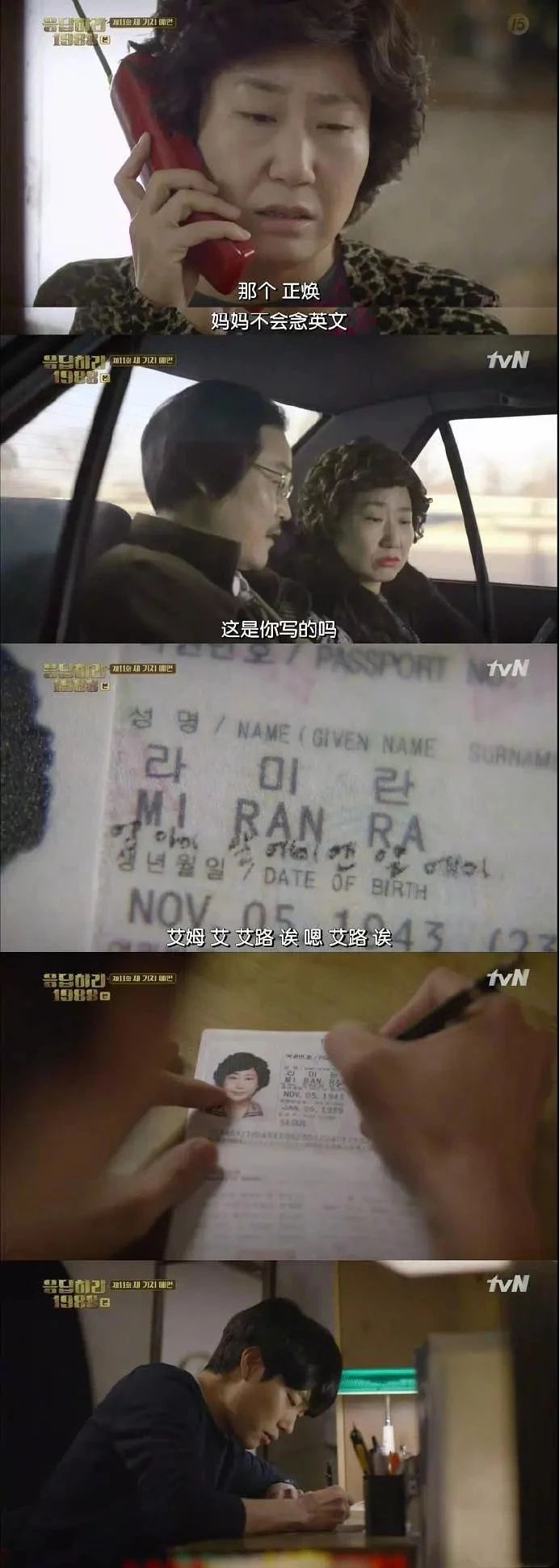 正焕妈出国不会读英文,正焕就偷偷地在护照上用韩语把发音一个个标注好
