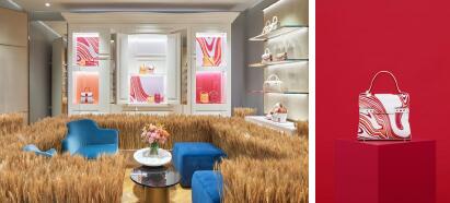 海风轻拂,惊喜呈现玫瑰的馥郁芬芳,橱窗中陈列的Forever Rose系列包袋交织成粉色调的乐章。本季的Camaïeux系列以夺目的粉色调亮相。Blush、Nude和Silk Pink色组合,展现出一种微妙而温柔的三色效果,让这款手工制作的手袋成为女性魅力与风情的缩影。