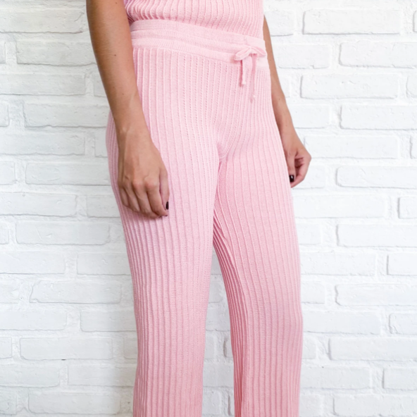 除了这种束口针织裤,很多阔腿板型的也成为了品牌推出的重点,作为懂女性的Victoria's Secret,分别推出了两条色彩不同的针织裤供大家选择。