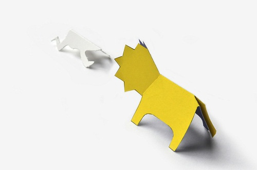 沿着每一页的剪切线剪下各种轮廓,再稍微折叠一下,就变成了能站立的各种小动物。