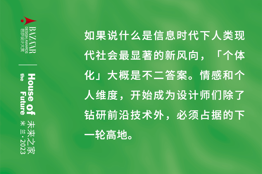 「未来之家」(House of the Future) ,一方面勾起了人们对于未来生活方式的无限神往与密切关注,另一方面串联起芭莎设计大赏2023米兰国际平行展的空间逻辑叙事。
