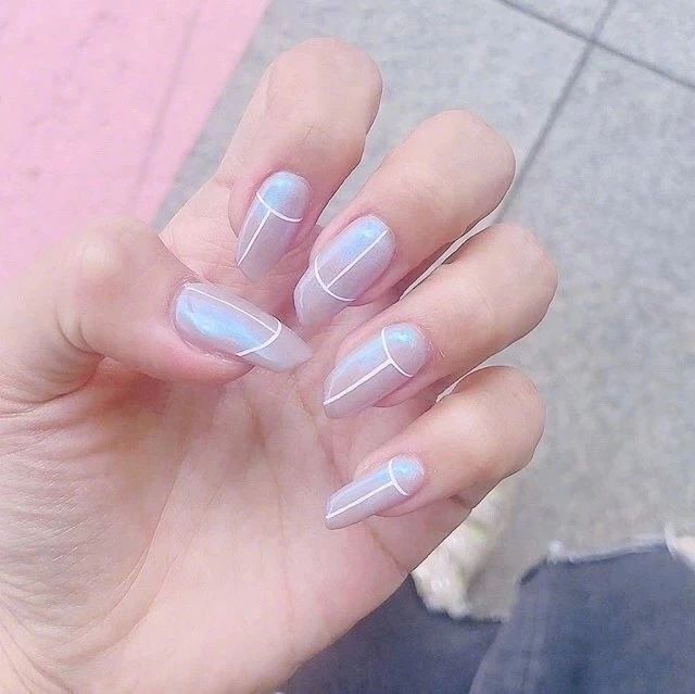 跟一般的美甲形状不同,这款美甲斜梯形的切面就像还未使用的口红一样的特别造型的确足够吸睛