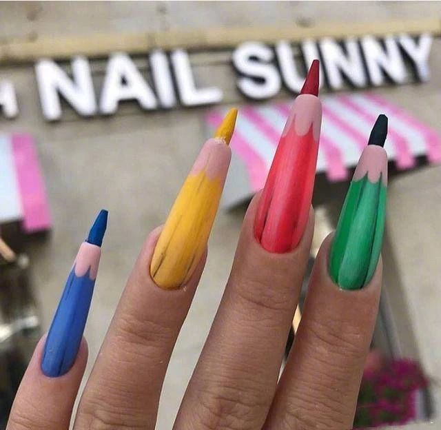 不仅有口红型美甲这样简单的异形美甲,也可以根据做的图案对指甲形状做出调整。