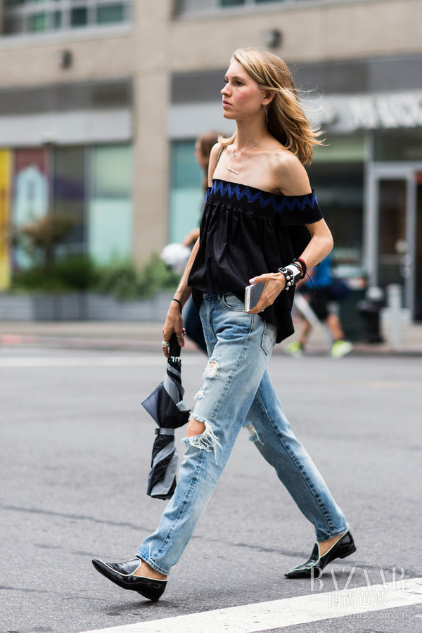 芭姐觉着牛仔裤就是一字型的soul mate,一个性感到无处安放,一个街头感十足随意到不行,混搭出来就是perfect!
