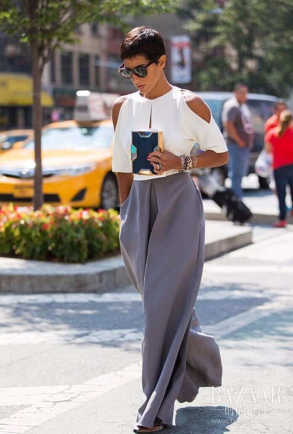 说肩宽就必须要遮?只要露的得当,就能立刻变成窄肩人,肩宽的妹子得避免一字领,因为它会视觉上拉长肩部的宽度,而显得更加魁梧。在此建议肩宽的妹子们选择斜肩式的露肩装来打破这一平衡,不仅削弱了宽肩的印象,同时半遮半露,让你看起来更加性感!