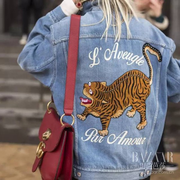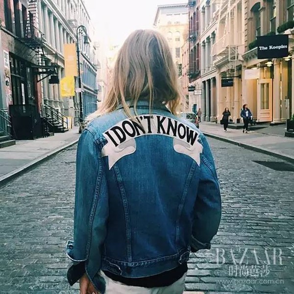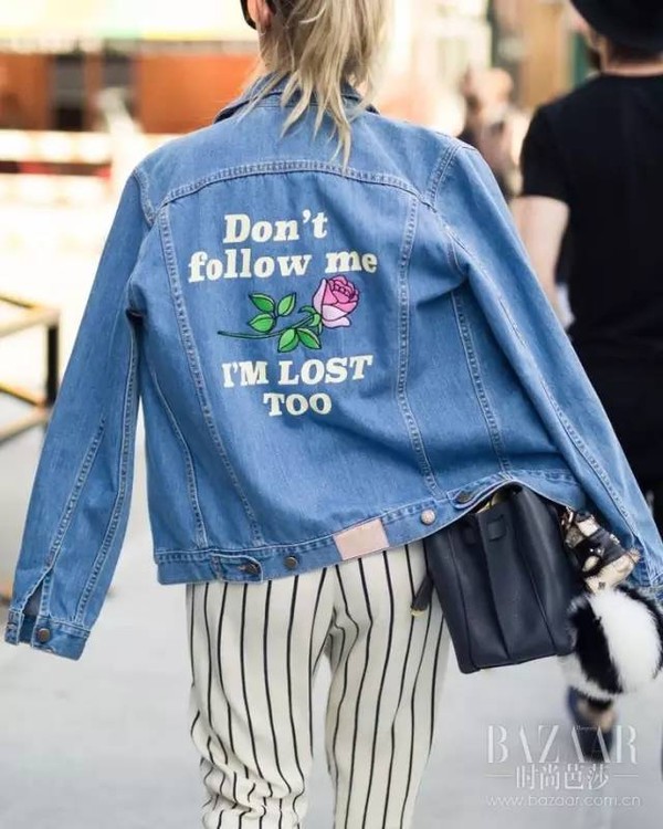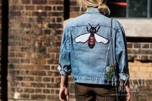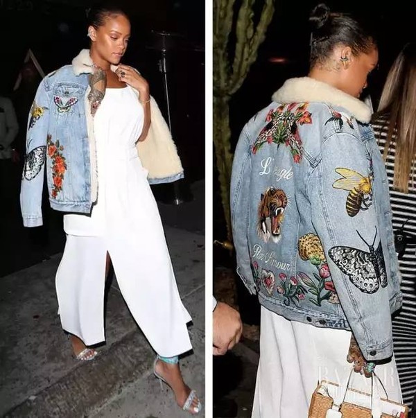 时髦的人从来都不care今天的温度多少,你看日日一身白色套装,踩着一字带高跟鞋,披着背面绣着动物图案的牛仔外套,太美了!