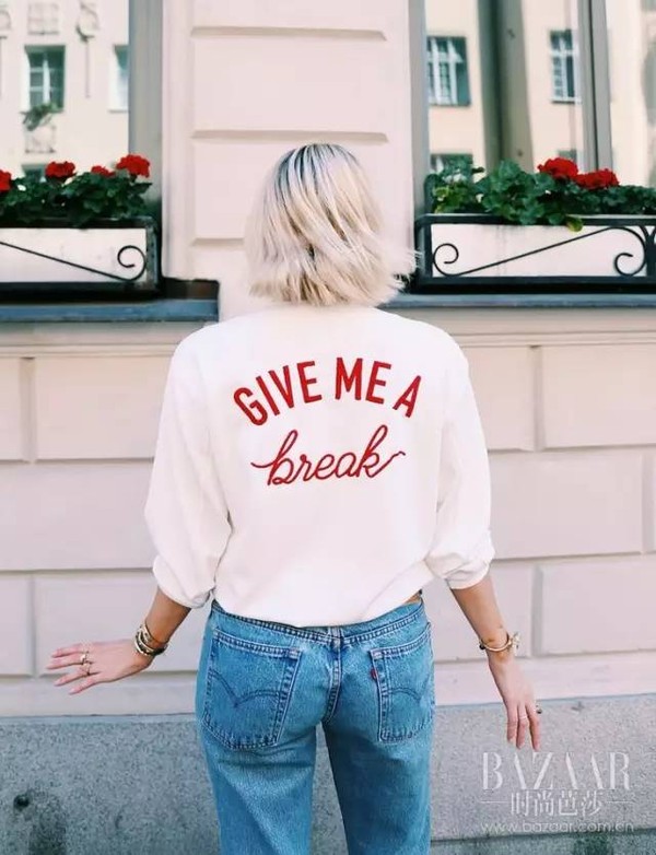 像印着“GIVE ME A BREAK”这样有趣又有寓意的棒球服,不仅能表明自己的态度还时髦得跟别人不一样。