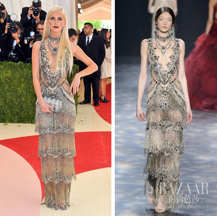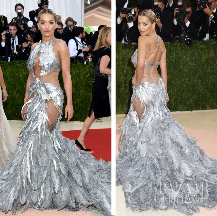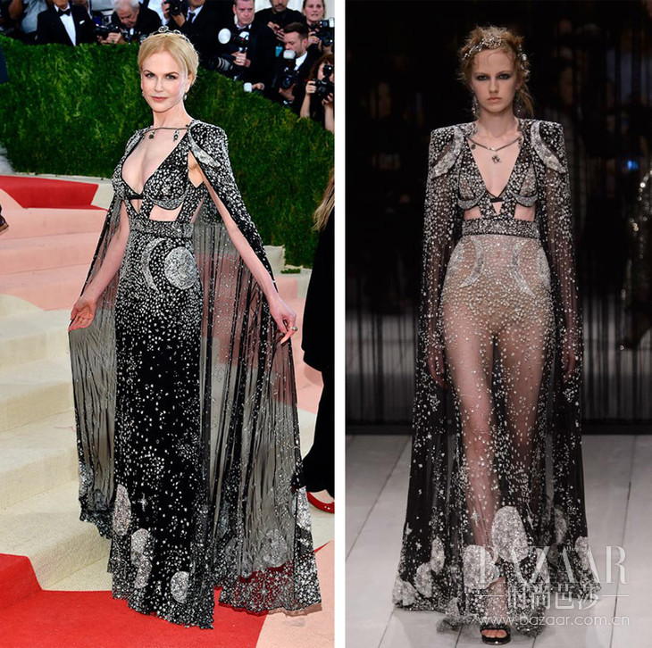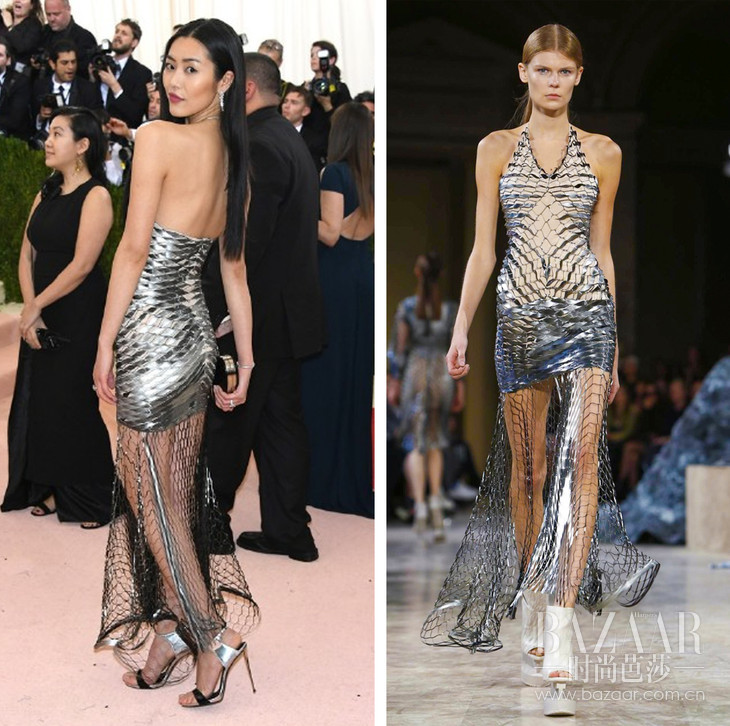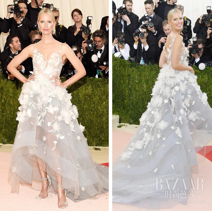 这一届Met Gala红毯上,最符合科技主题又穿得最美的,要算好莱坞女演员Claire Danes了(与小李子共同演出过电影《罗密欧与茱丽叶后现代激情篇》,朱丽叶就是Claire Danes扮演的)。这条来自Zac Posen的露肩大裙摆礼服在灯光下已显得梦幻轻盈,没想到在黑暗中竟然整件礼服都会散发光芒,美惨了!其它女星嘛,穿得美玩得开心就好~