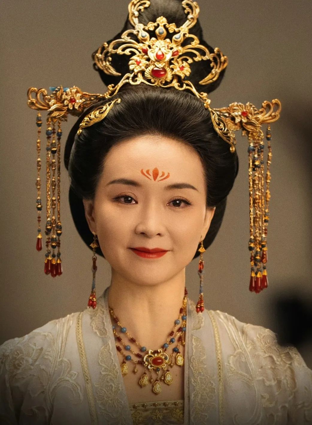 前段时间因白月光扮相引起大家热议的陈都灵,这一次在剧中化身看似温婉,实则暗藏野心的皇后,眼角微垂,眉心间娇花点点,这抹莲心花钿把人物的心机烘托得恰到好处。
