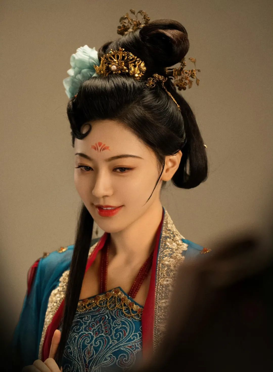 其他角色的古装花钿扮相亦是可圈可点,何蓝逗饰演的“杨盈”公主,从刚开始的不受重视到最终成为女帝,花钿的出现恰如其分地对应了她的成长线~陈小纭戏中的花钿妆,扑面而来的是娇纯可人的魅惑感,“初贵妃”的貌美程度令人心动。